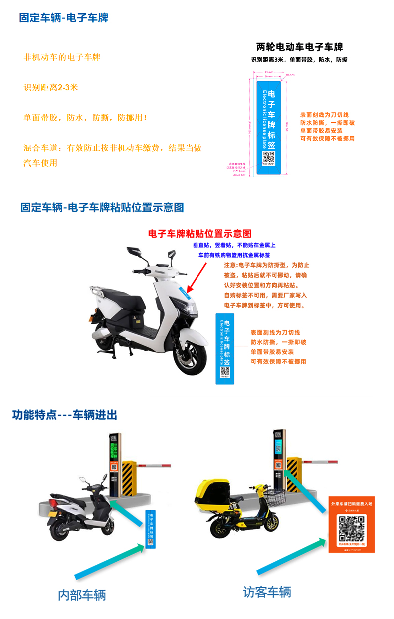 非机动两轮电动车辆出入管理系统 电动车牌防复制电子标签